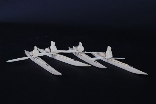 A set of early 20th century Inuit carved marine sea ivory carvings - figurines of Kayaks and Eskimo's ( see illustration )