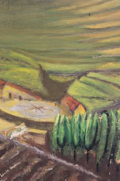 Audrey Lewis Hopkins ( 1914 - 2011) An oil on hardboard painting study entitled ' North Spain. Signed & reverse with notation. Measures 61 x 71 cms Cost to post UK on a tracked and recorded service £19.99 + VAT Cost to Post Ireland, France & Germany £45.00 = VAT Other locations, please enquire