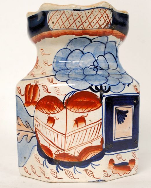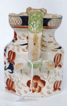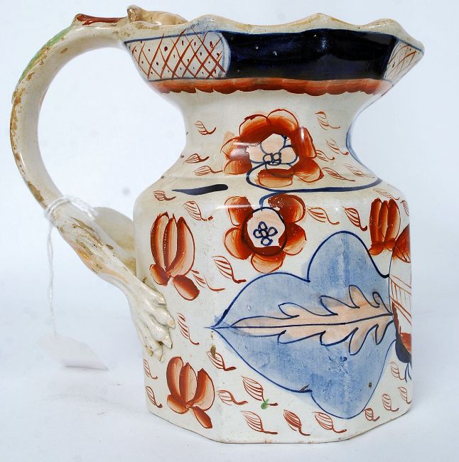 A 19th century Ironstone Imari pattern jug having dragon embellished handle with handpainted Imari worked design. 16cm H