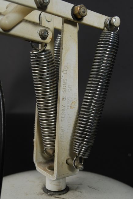 A vintage Herbert Terry anglepoise Industrial lamp raised on terraced base with pendant shade