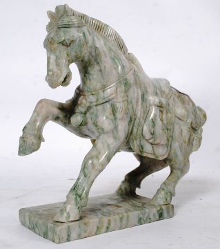 A large 20th century very ornately carved Chinese soapstone horse