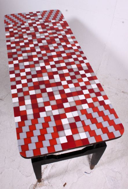 A vintage retro 20th century resin set two tone suspension set coffee table raised on an ebonised base with tapered legs. 45cm H 107cm W 41cm D