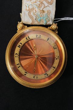 A large 20th century unusual large pocket watch by L Bader of Geneve, Switzerland. The large engine turned dial in oversized cased having embroidered fabric atop