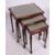 An antique style mahogany and leather graduating nest of tables. Raised on cabriole legs with gilt tooled leather tops, each with glass insets. 56 H x 54 W x 42 D