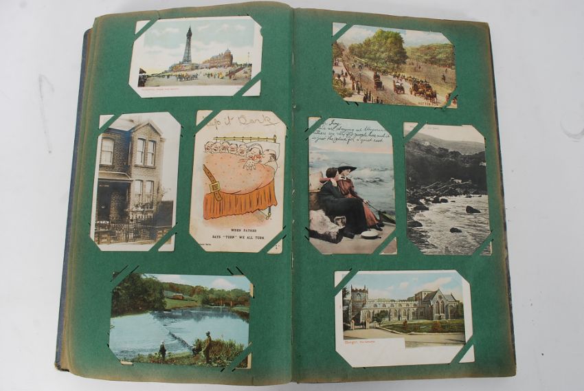 A good vintage Edwardin post card album to include a varied assortment of topics to include WWI, comedy, scenic etc, etc