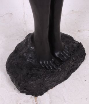 A large resin constructed garden fountain in the form of a nude women raised on a naturalistic plinth. h 163cm w 39cm d 26cm