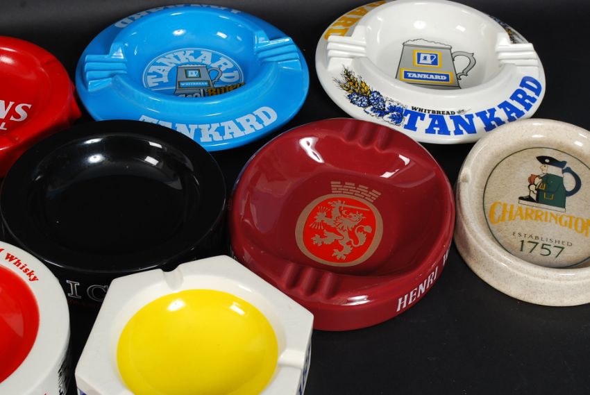 A collection of 14x pub ashtrays to include Harp, Haig, Tankard and many others, some vintage.