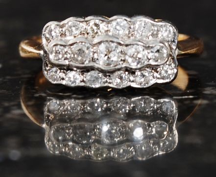 An 18ct gold and diamond ring. The mount set with 17 round cut diamonds approx . Weight 5.5g - Size M/N