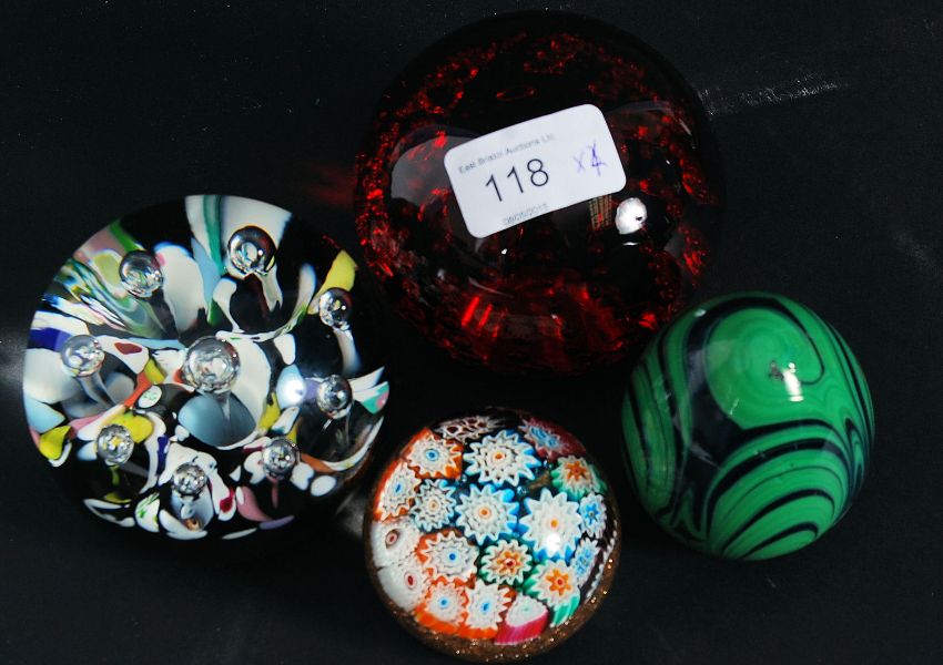 A 20th century millefiori canework paperweight together with 2 control bubble paperweights one marked CG. 7cm H 8cm W