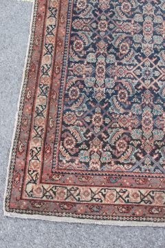 A late 19th century / 20th century hand woven Persian rug having blue and black ground surrounding central medallions to centre. 300 cms x 110cms