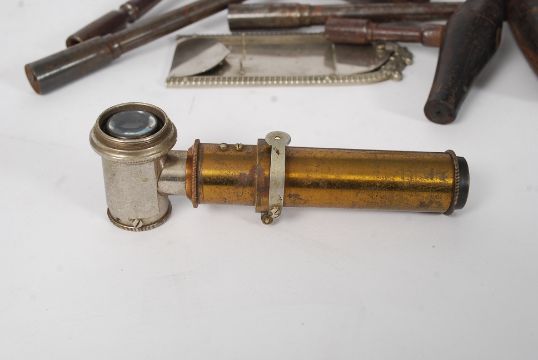 A collection of vintage piano tuning keys together with an unusual brass optical instrument ( see illustration )
