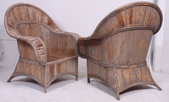 A 1930's style excellent shaped large bamboo plantation style pair of garden armchairs having swept backrests. Matching large sofa in following lot 1080. 100cm H 96cm W 170cm D