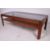 A retro 1970's teak and smoked glass coffee table raised on squared supports with chamfered from edges. 35 H x 111 W x 49 D