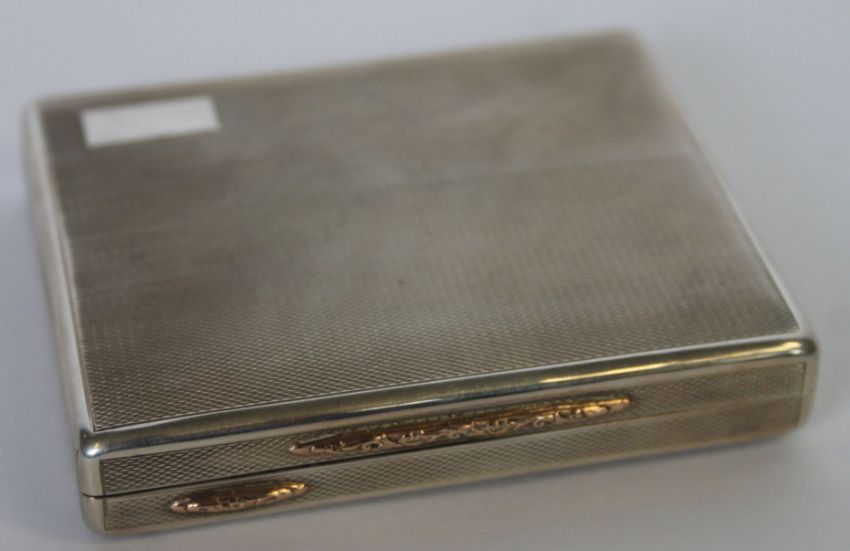 An excellent silver hallmarked cigarette case by David Sutton & Sons bearing London hallmarks for 1946. Weight 144.8g. Engine turned with plain rectangular cartouche