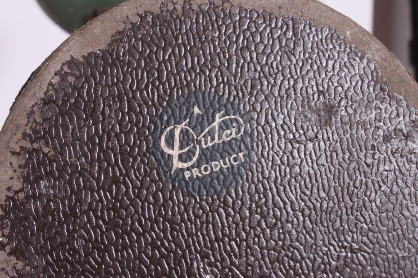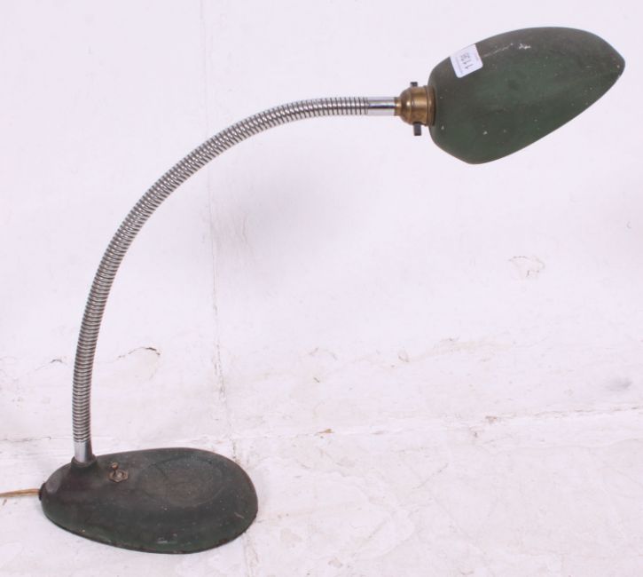 A 1930's cast metal anglepoise Industrial desk lamp in the original green finish with flicker switch in place