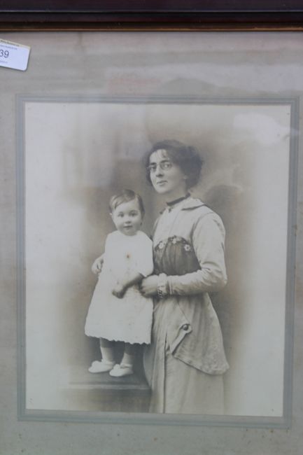 Two vintage early 20th century pair of old photographs depicting a baby and moter. No marks or signatures. Measures:30cms x 26cms.