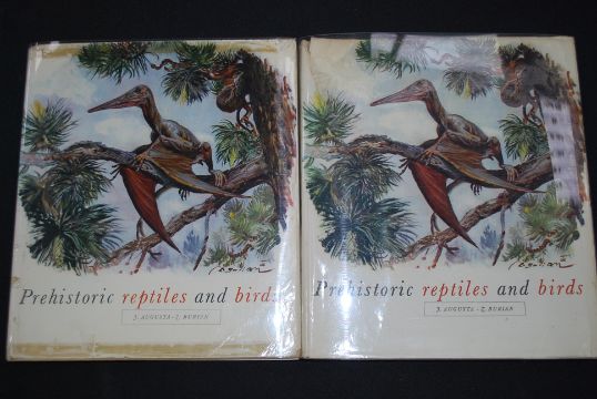 Prehistoric Reptiles And Birds by Dr Josef Augusta and illustrated by Zdenek Burian. Large hardback