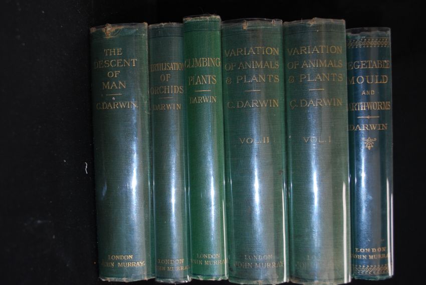 A collection of 6 hardback volumes by Charles Darwin. Published in London by John Murray. 1/ Variation of Animals and Plants Under Domestication Charles Darwin Published by John Murray, UK (1905) Used Hardcover Second Edition Volumes 1 + 2 2/ The Formation of Vegetable Mould, Through the Action of Worms, with Observations on Their Habits, with illustrations, Fourth Thousand, DARWIN (Charles). Published by London John Murray (1881) Used Hardcover First Edition 3/ The Movements and Habits of Climbing Plants Charles Darwin Published by John Murray, UK (1906) Used Original Cloth Second Edition 4/The various Contrivances by which Orchids are fertilised by Insects. Second Edition, popular, seventh impression. DARWIN, CHARLES. Second Edition Used Hardcover 5/The Descent of Man and Selection in Relation to Sex with Illustrations Darwin, Charles Published by John Murray, London (1906) second edition reprinted