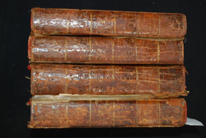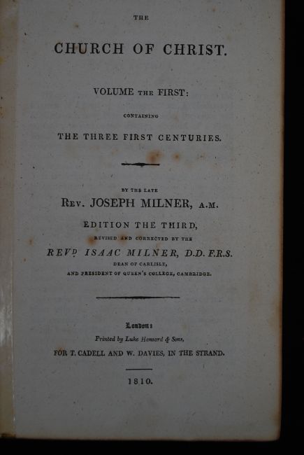 The Works of the Late REV. Joseph Milner. 4 Volume Containing The History of the Church of Christ Revised & corrected by Isaac Milner 1810. Leather bindings, loose / off ( see illustration ) (4 x books )