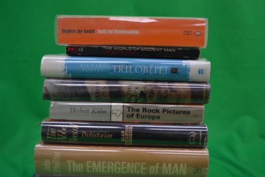 Ancient man, a collection of mostly hardback books to include: The Emergence Of Man -Pfeiffer,Wonderful Life,Bully For Brontosaurus and Dinosaur In A Haystack by Stephen Jay Gould,The Rock Pictures Of Europe by Herbert Kuhn. 9 Books in total