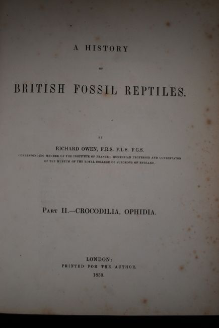 British Fossil Reptiles by Owen. Part 1 Chelonia, Part 2 Crocodilia , Ophidia, In hardback printed in 1850.