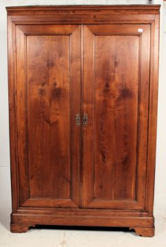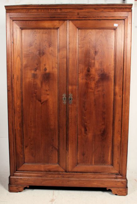 A 19th century French solid armoire double wardrobe. The beautiful flared cornice front over double doors with shelf to interior being raised on stunning bracket feet. Dismantles completely for ease of movement. 206cm H 131cm W 53cm D