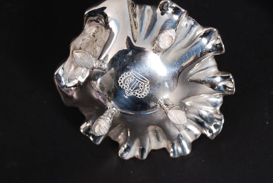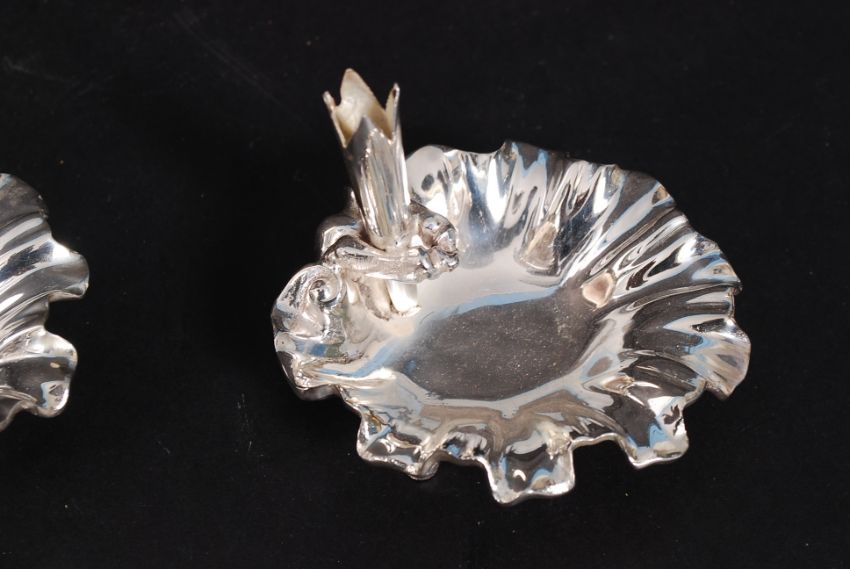 A pair of decorative Art Nouveau silver plated salts having rising tapered stem vase centres