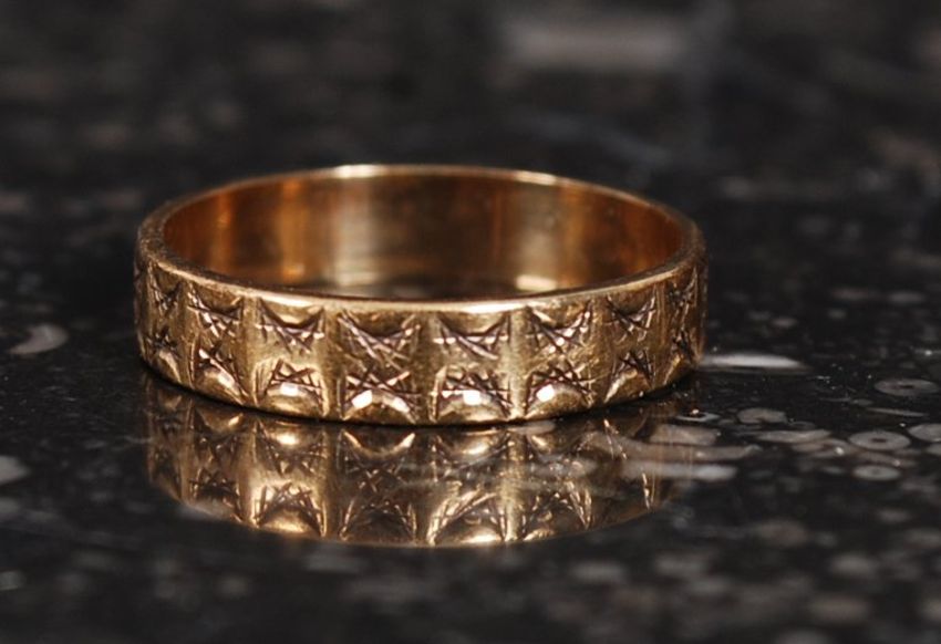 A ladies 9ct gold and platinum diamond chip wedding ring being marked t o the shank, weight 1.9g