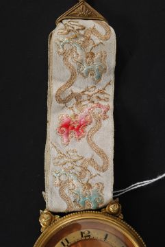 A large 20th century unusual large pocket watch by L Bader of Geneve, Switzerland. The large engine turned dial in oversized cased having embroidered fabric atop