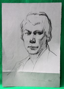 COOTE, MICHAEL; x 5 drawings, all sketches of people Pencil or pastel on paper; largest 63cm x 50cm - man wearing glasses, pictured in profile - half-length portrait sketch of a woman - unfinished but detailed drawing of a woman wearing a long robe, signed - sketch of a woman in profile - portrait of a man, signed and dated '83 Michael Coote studied as a photo lithographer, and is often credited as 'colour illustrator' on contemporary Sherlock Holmes publications.