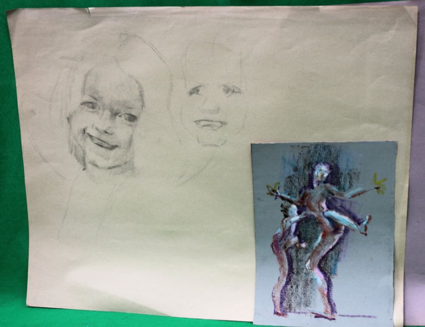 COOTE, MICHAEL; x 5 assorted drawings, watercolour, pencil and coloured pastels on paper - a sketch of two childrens' faces - two dancers - a tree, signed and dated '84 - a portrait of a man wearing a hat, signed - a woman seated, signed Michael Coote studied as a photo lithographer, and is often credited as 'colour illustrator' on contemporary Sherlock Holmes publications.