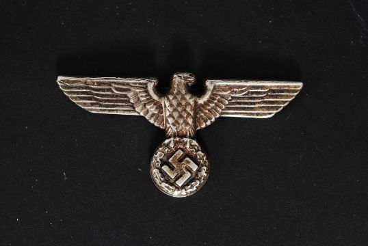 Nazi eagle silver plated cap / uniform badge depicting the eagle stood atop a Swastika emblem.