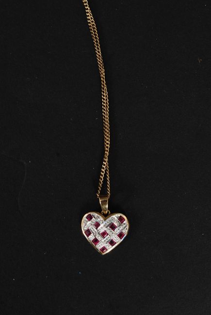 A 9ct gold chain with a 9ct ruby and diamond pendant. Weight: 4g.