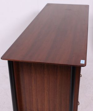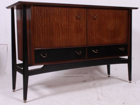 An early "E Gomme" G Plan sideboard with ebonised show frame plus drawers with brass handles (Gold E.G stamp inside). Measures: 85cm x 133cm x 49cm.