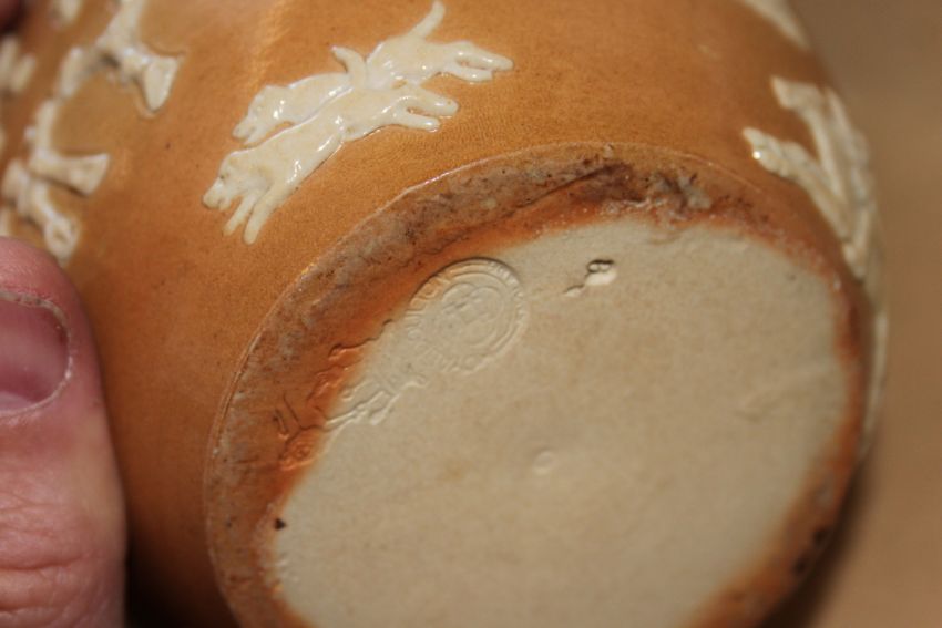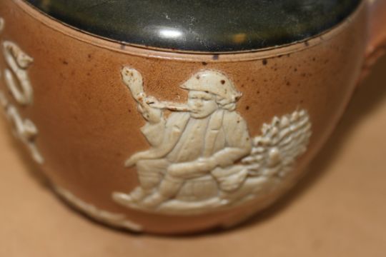 A Royal Doulton stoneware glazed Dewars Whisky pub stoneware jug wth impressed stamp to the base