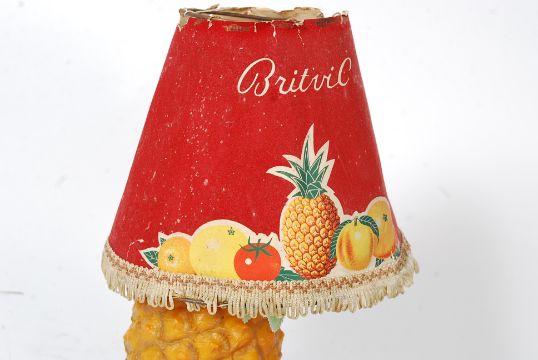 A fabulous original retro breweriana Britvic pineapple juice table top lamp stand complete with the rare orignal shade ( shade af )