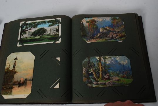An Edwardian postcard album featuring a range of postcards, mostly topographical.