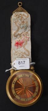 A large 20th century unusual large pocket watch by L Bader of Geneve, Switzerland. The large engine turned dial in oversized cased having embroidered fabric atop