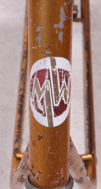 A retro 1970's Scooter in original gold paint with unusual seat to rear.