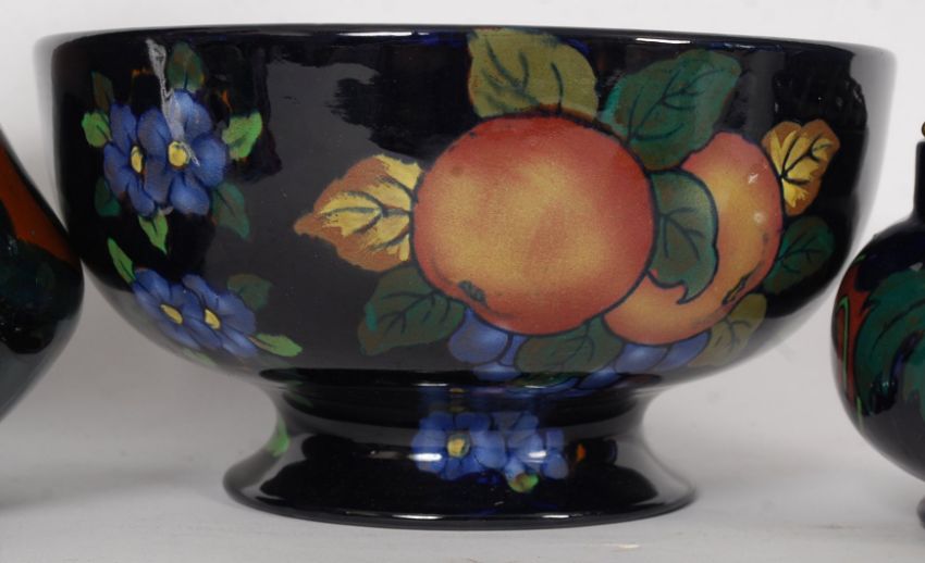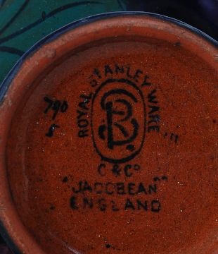 A Royal Stanley Ware ( Jacobean ) bowl and jug together with a similar ceramic Decoraware vase