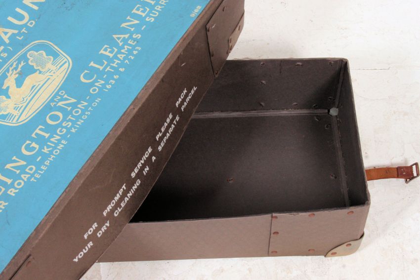 A good mid 20th century vintage laundry box for ' The Park Laundry ' complete with leather strap. Measures: 14cm x 64cm x 29cm.
