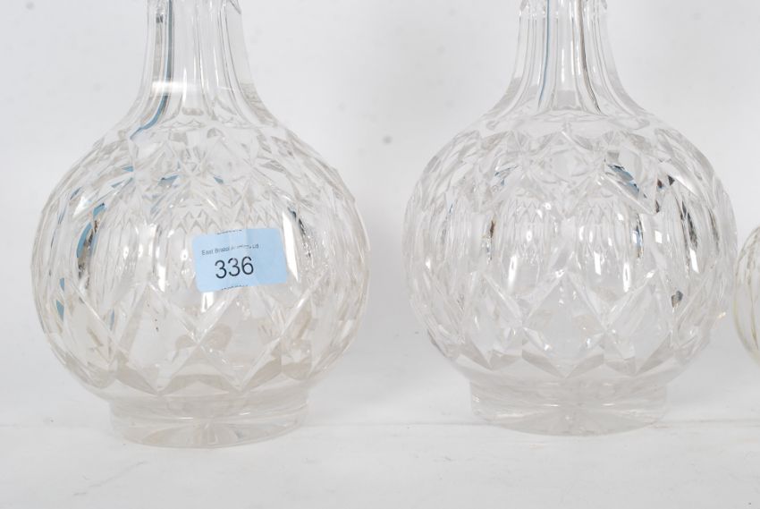 A collection of decanters to include cut glass to include a good matching pair, all with stoppers