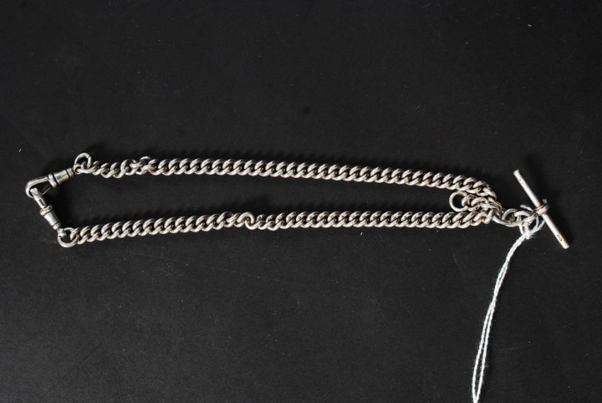A Victorian silver hallmarked Albert watch chain, with hallmarks for HB & Co. Weight: 56g