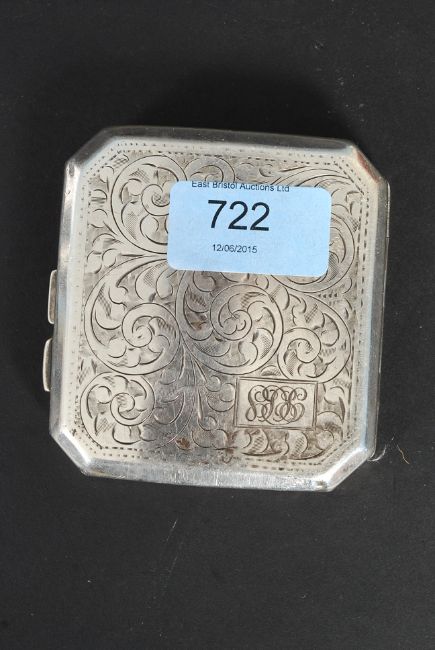 A hallmarked silver cigarette case, marked for MHM Co, Birmingham with B date letter. Decorative engraving to front and rear. Weight: 96g.