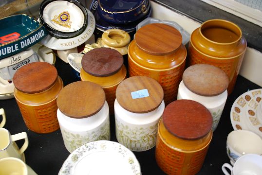 A collection of vintage retro Hornsea storage jars in the Fleur pattern all with notation to front together with others ( as in illustrations )