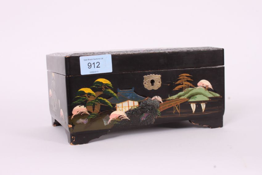 A collection of costume jewellery to include watches, necklaces and brooches etc housed within a good 20th century oriental lacquered jewellery box.