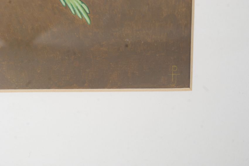 JONKERS, PAUL; 1951 - Present. ' Mr Toad ' original painting. Monogrammed to lower right corner. Framed and glazed. Fabulous detailed nursery rhyme painting depicting Mister Toad dancing with boater hat and cane. Picture size; 21.5 x 15cm