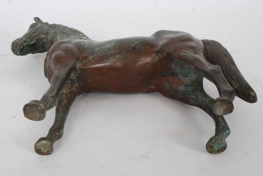 An early 19th century (believed) Chinese bronze war horse statue having brushed main and tail.