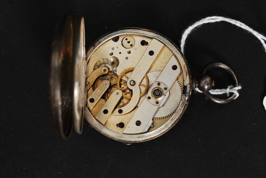 An early 20th century W. Louis - Geneve swiss pocket watch. The enamel face with notation, the case marked Fine Silver. Total weight 61.9g