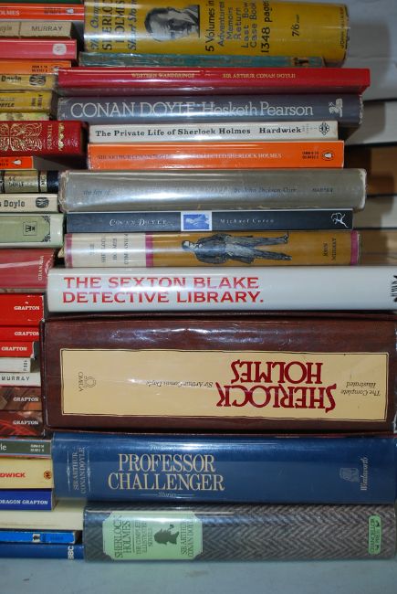 Sherlock Holmes and Arthur Conan Doyle. Well over 30 books in all ti include : The complete Sherlock Holme Short Stories, Conan Doyle by Hesketh Pearson, The Private Life Of Sherlock Holmes, The Life Of Sir Arthur Conan Doyle by John Dickenson Carr, The Maracot Deep, The Hound Of The Baskervilles, The Valley Of Fear and many more.